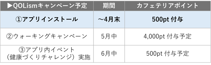 第1弾として、4月末までにQOLismアプリのインストール&ログイン完了した方を対象に、